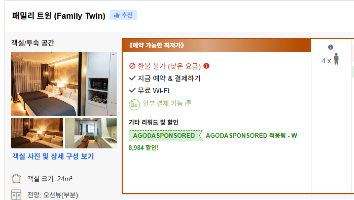 4명 이용이 가능한 해운대 호텔을 찾다가