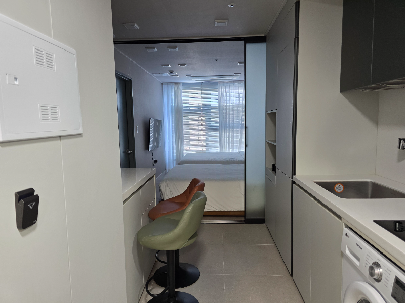 입구 우측엔 작은 간이주방과 세탁기가 있다