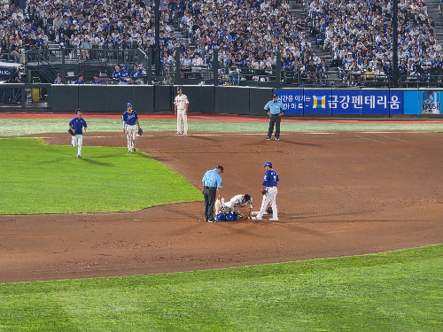 도루하다가 삼성류지혁?이랑 부딪힌듯 ㅜ