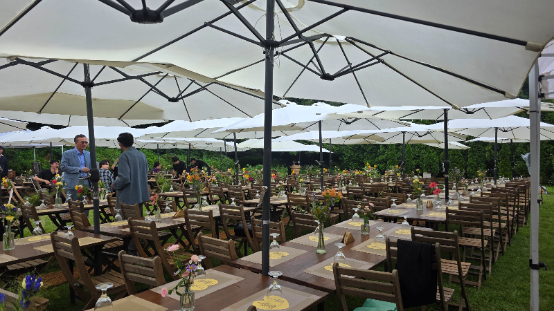 나무 테이블마다 해를 가리는 천막이 쳐져있고,