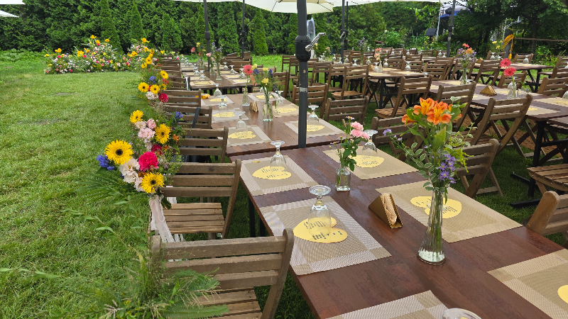의자마다 꽃으로 장식되어 있어서 감성 넘쳤다
