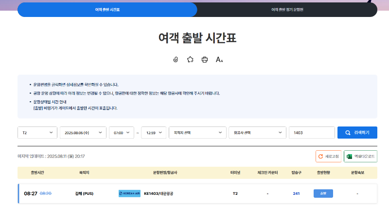 그럼 내 비행기가 몇 시에 몇번 게이트에서 출발하는지 바로 나옴
